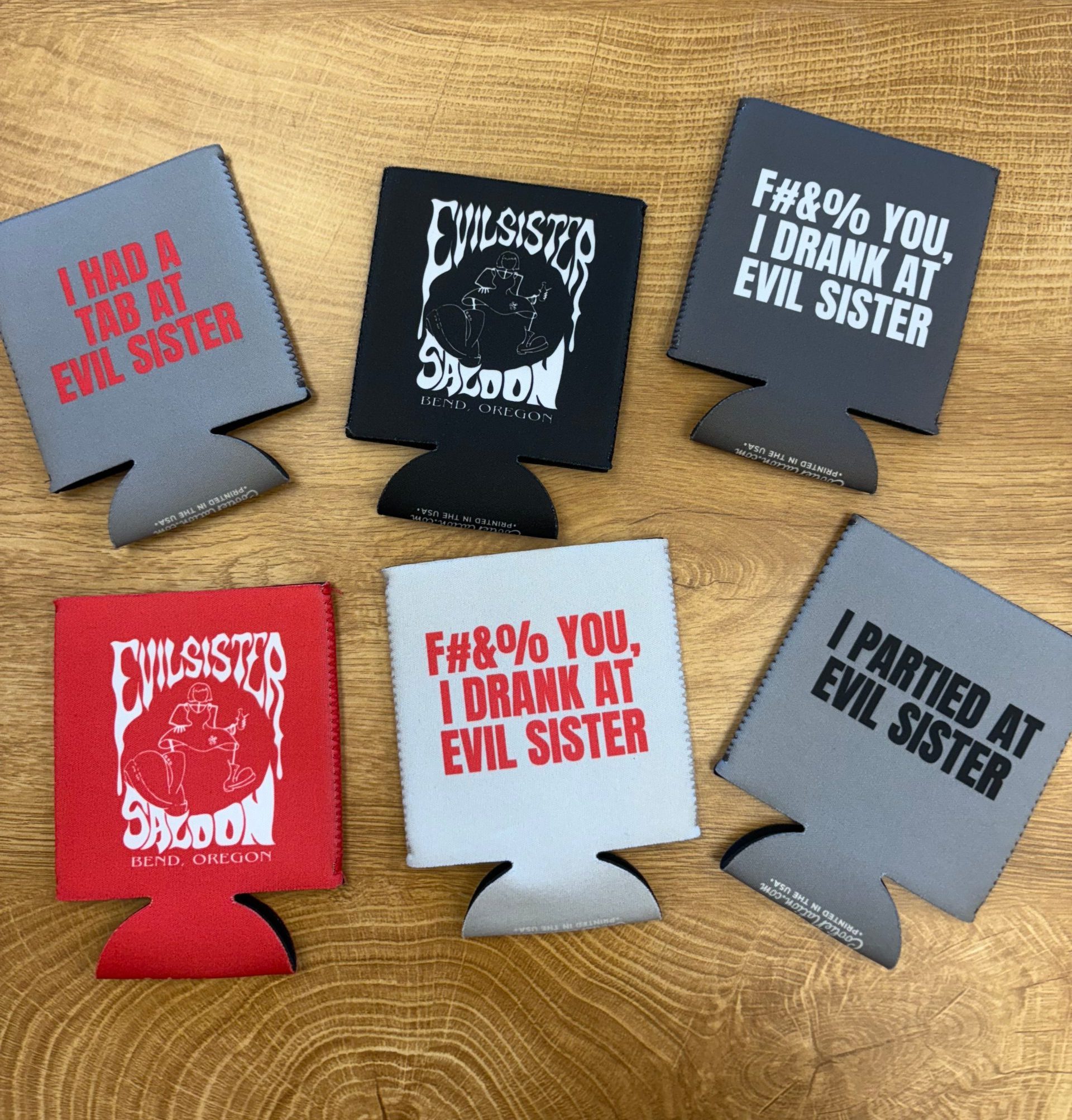 | Colors | Black ES Logo (dbl sided), Red ES Logo (dbl sided), F#$% You I Drank & ES Logo – Dk Grey, F#$% You I Drank & ES Logo – Lt Gray, I Had Tab at ES & ES Logo – Gray, I Partied at ES & ES Logo – Dk Gray |